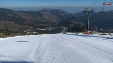 Lyžařů bylo více jen dopoledne, ale nečekalo se na žádnou lanovku. Odpoledne již sjezdovky naprosto prázdné. Začínal jsem na Záhradkách a hned si dal FIS-ku, ta byla fajn, trochu přimrzlá i když noc byla zatažená a tedy moc nemrzlo. Pak jsem zkusil Predné Dereše, také dobré. Po 1-ce pod Funitelem jezdilo nejvíce lidí, tak té jsem se vyhnul. Zato Majstrovská byla v 10:00 výborná, v podstatě tam byl fresh track. V poledne jsem opět zavítal na Jih, v tom čase byly lepší Zadné Dereše, Predné Dereše už měly dost hluboký sníh. Po obědě freeride v Dievčenskom žlabe, tam trochu náročnější sníh, byl vlhký a hluboký, patrně to byl ještě ten z posledního sněžení, který ještě nezfirnovatěl. Z Derešského kotle jsem přetraverzoval nově budovanou Rodinnou sjezdovku a napojil se do Spravedlivej, v muldě je sněhu ještě dostatek, ale pozor na odjezd v dolní části, před křiřovatkou s Majstrovskou už to bylo na hraně sjízdnosti, já to ještě sjel bez vyzouváná ale další dny už bude třeba lyže vyzout. Po výjezdu na Brhliská jsem vyzkoušl již zavřený Padák, ten šel sjet bez problémů i když už není upravovaný. A perlička nakonec, tajný tip Slalomák. Sjezdovka je již oficiálně uzavřená, ale byl výborný, jak dopoledne tak hlavně v pozdním odpoledni. Nachází se tam výborný firn, sjezdovka je rovná jako stůl. Uzavření sjezdovky má svůj důvod, dojezd na Záhradky se již nedá upravovat, sice je tam souvislá sněhová pokrývka, ale je malá, sníh je tam sice špinavý, ale sjet k sedačce se dá zatím bez problémů. Slalomák se mi tak líbil, že jsem tam před závěrečnou dal 3 jízdy za sebou.