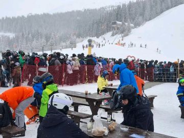 Ked fúka silný vietor a ľudia stoja v takýchto veľkých skupinách tesne pri sebe, je to v podstate ochrana pred vetrom, tučniaky v antaktíde to tiež tak robia stoja tesne pri sebe udržujú si tým teplo a čakajú kým prestane fúkať a funguje to už tisíce rokov v antarktíde tak prečo nie aj v Jasnej 😄.