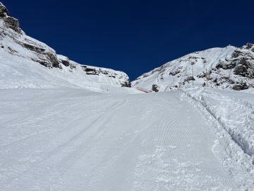 Začátkem pracovního týdne jsme lyžovali ve švýcarském středisku Mürren - Schilthorn v oblasti Jungfrau. Měli jsme velké štěstí na sněhové podmínky a počasí. O předchozím víkendu se v Alpách ochladilo a napadlo mnoho nového sněhu. Díky tomu jsme si mohli zalyžovat i na jaře na prašanu. V pondělí bylo skoro zataženo a chladno, takže prašan vydržel celý den. V úterý bylo jasno, sníh vydržel ve výborném stavu dopoledne, po poledni již v dolních polohách na slunci začal vlhnout. Sjezdovky byly po oba dny velmi dobře upravené. Potěšující byla i nízká návštěvnost lyžařů.